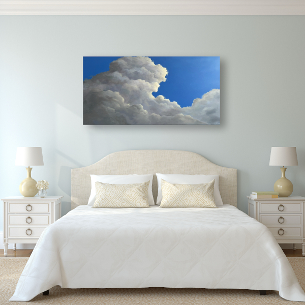 Step inside a sunny summer day with this large cloud painting by Canadian artist, Olive Chan.
